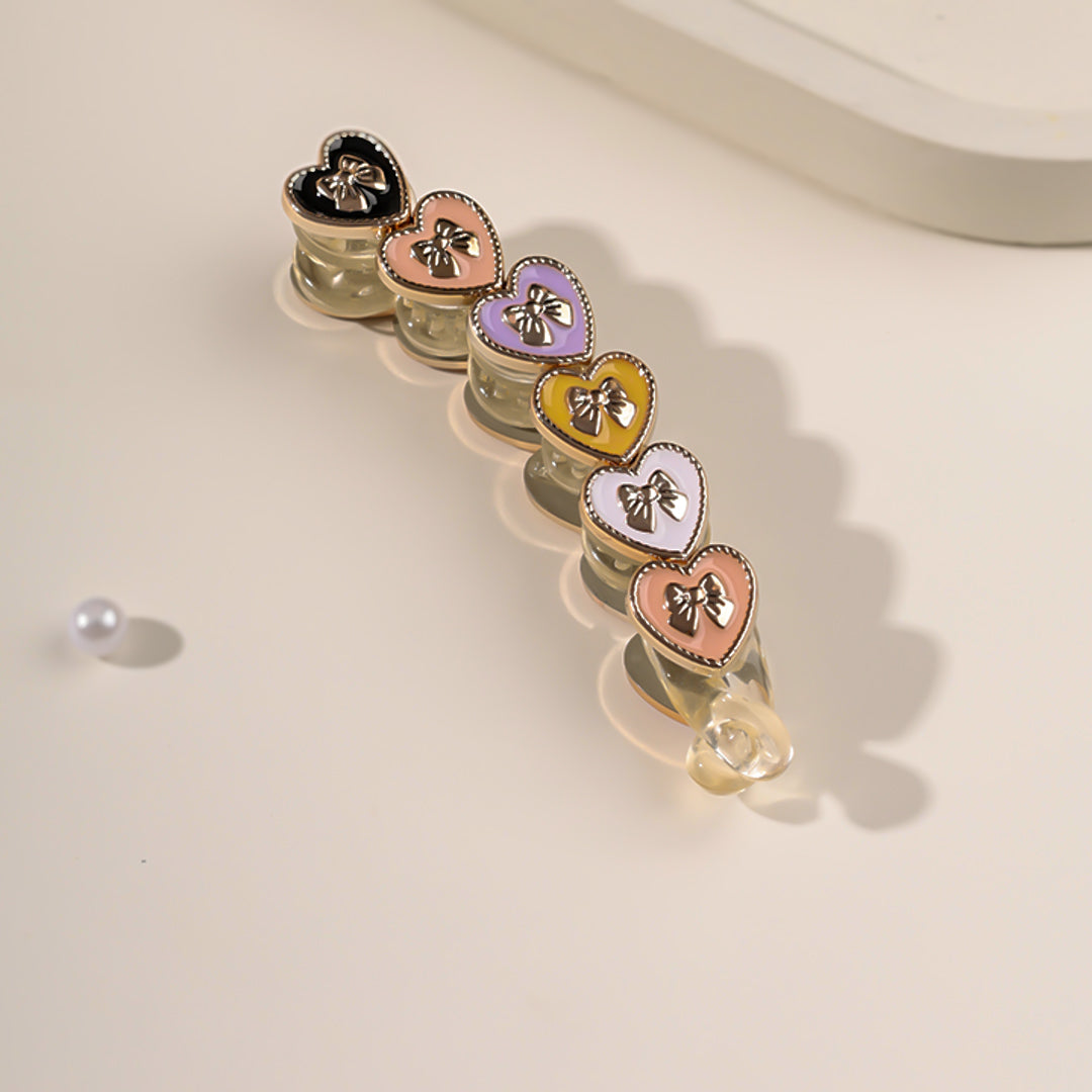 Add a pop of color to your hairstyle with our Colorful Heart Bow Hair Claw. Made with a sturdy design, this hair accessory is perfect for holding your hair in place while adding a touch of cuteness. Available in a variety of vibrant colors, it's a must-have for any hair accessory collection.