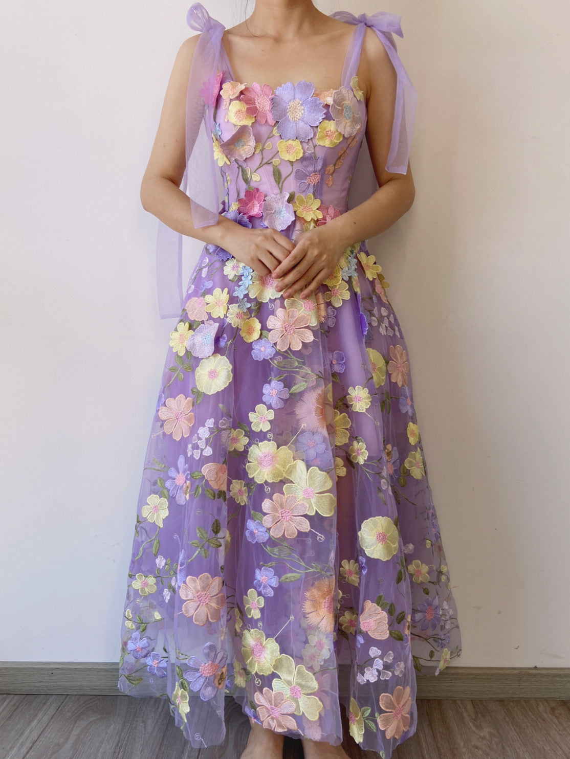 Let your inner fairy shine with our Fairycore Floral Embroidery Corset Dress. This stunning purple dress features a unique A-line design adorned with bright and beautiful floral embroidery to show your fashion-forward style. The backless design and back lace up is complete with strap and corset for an extra-special look. Perfect for any occasion, from daily wear to weddings.