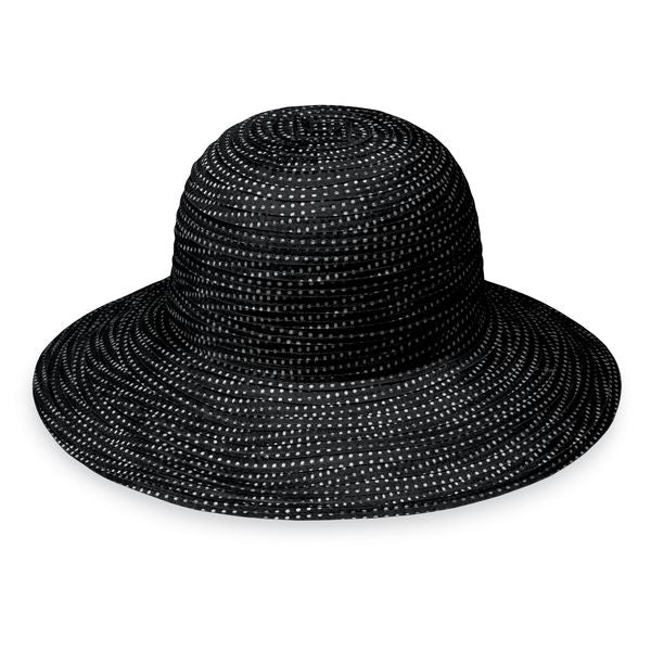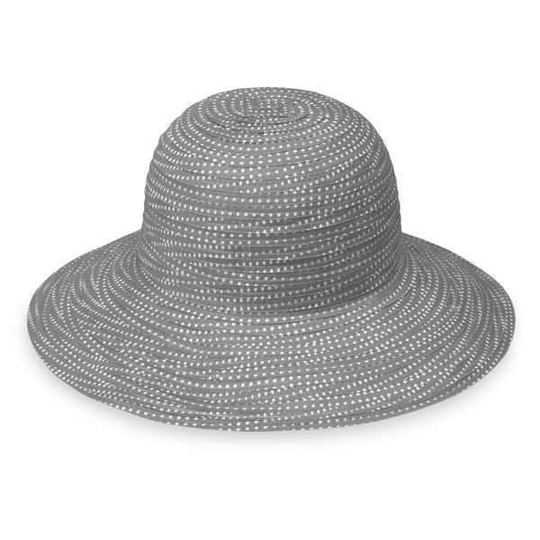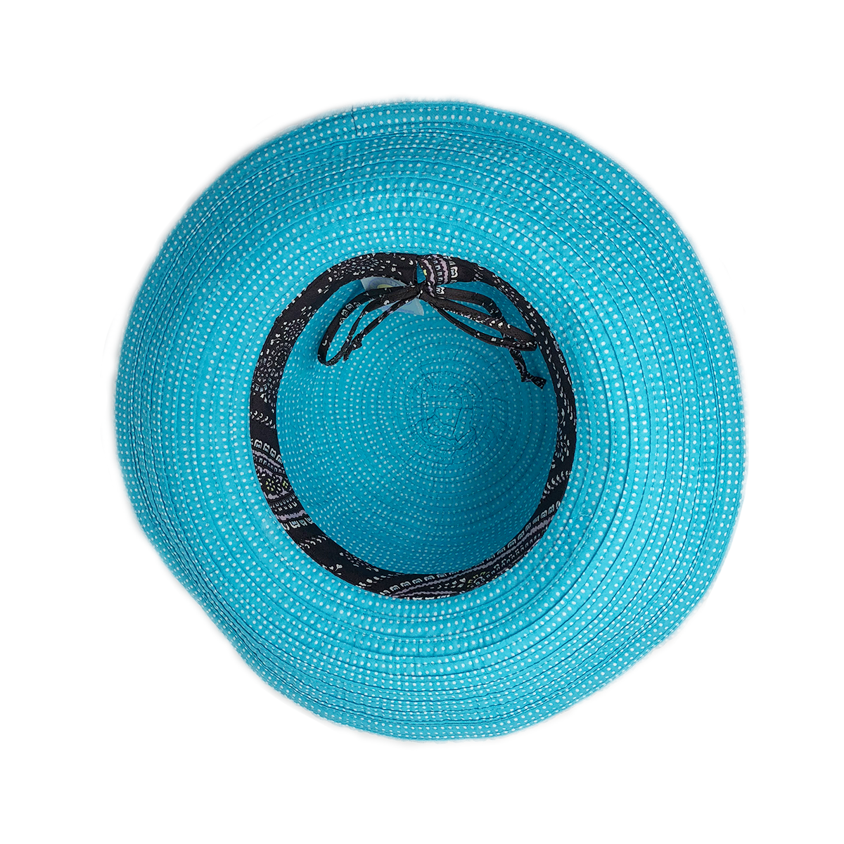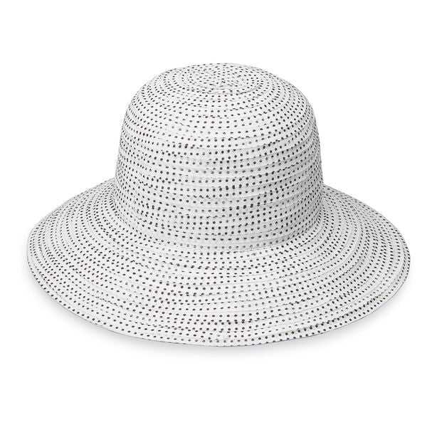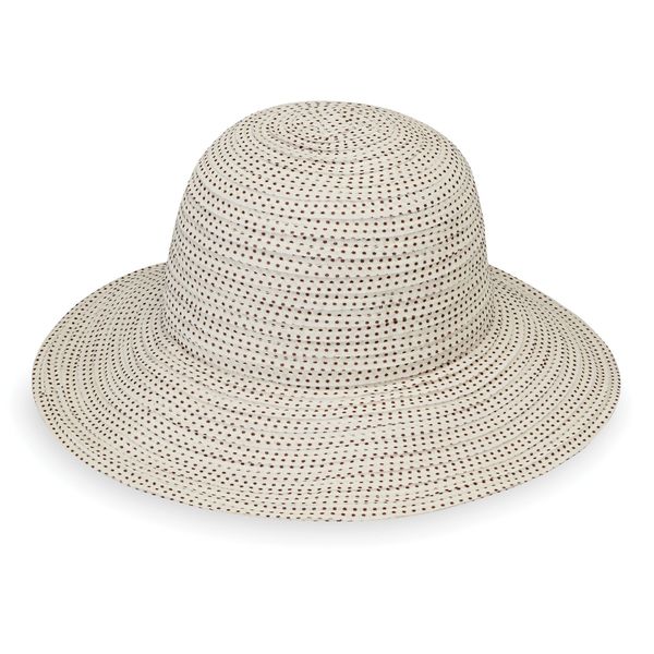 The chic Petite Scrunchie offers versatile style with its adjustable brim, playful colors, and wide-brimmed sun protection.